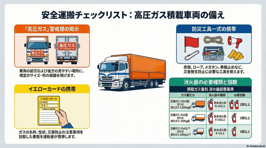 高圧ガスをトラックに載せて持っていこうと思うんだけど何か必要なものはあるの?